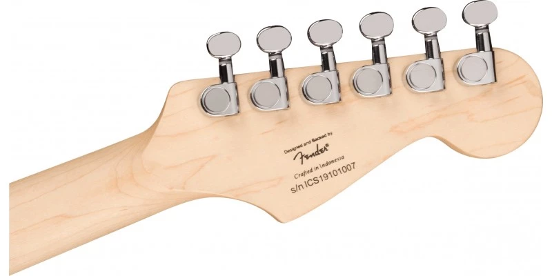 The Left Handed Squier Mini Stratocaster is the perfect companion for players seeking a reduced-size instrument with classic styling and familiar Fender tone. Highlights include a thin and lightweight body, an easy-to-play “C”-shaped neck profile, a trio of Squier single-coil pickups with 5-way switching for sonic variety, and a hardtail bridge for solid tuning stability.