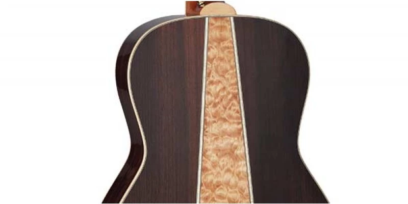 For players seeking the focused, articulate sound that this increasingly popular body style offers, the Takamine GY93 features a solid spruce top, rosewood sides and a stunning three-piece rosewood/quilt maple back. The slim mahogany neck and 12”-radius bound rosewood fingerboard provide great feel and playability, while the split-saddle design of the rosewood bridge provides superior intonation for sweeter-sounding chords and single-note runs.