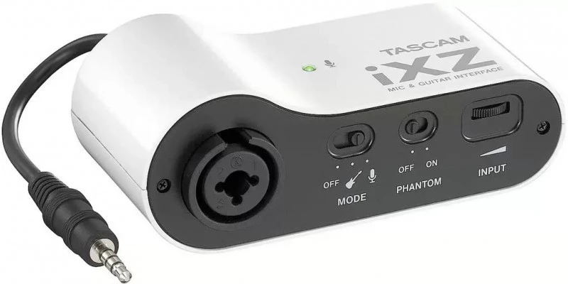 Tascam iXZ is a pocket sized mic/instrument input for Apple iPad, iPhone or iPod Touch. This powerful little gadget turns such a device into an instant recording studio. Plug in a microphone, guitar or bass to interact with the latest guitar amp, sampling, recording and DJ apps. The iXZ supplies phantom power for condenser microphones and a control to set the gain. There is also a headphone output to monitor from your iOS device.