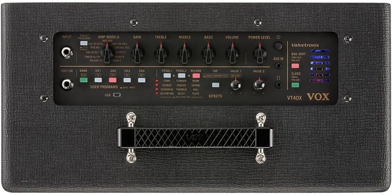 The VOX VT40X Valvetronix is a forty watt guitar amp combo. A new announcement for November 2015. This VTX Series amp replaces the outgoing VT40+. The Valvetronix Series of amplifiers have been some of our best sellers since they first appeared in the early 2000s . For sale online at Guitar.co.uk and in our Glasgow shop. Fast UK dispatch and delivery service.