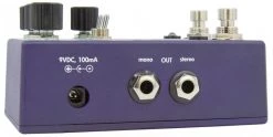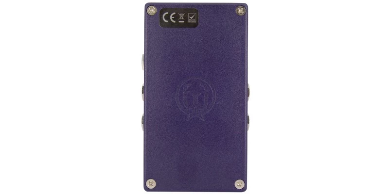 The Julianna comes in a deep lavender coloured enclosure with surf green ink, featuring original artwork of Julia’s big sister emerging from the depths that her sister once ruled. Illustration by Adam Forster. The die-cast enclosure’s exact size is 4.77” x 2.9” x 2.3”. Power requirements are 9VDC, centre negative (100mA minimum).