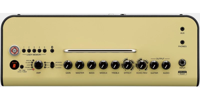 The Yamaha THR30II Wireless is a brand new model in Yamaha’s refreshed THR range of desktop guitar amplifiers. Featuring a rechargeable battery, plus an inbuilt Line 6 wireless receiver, the THR30II Wireless releases your music from the shackles of wires. Another new feature for the THR range is the inclusion of 1/4” line outputs, opening up additional recording and performance possibilities. The THR30II Wireless comes packed with 15 guitar amp models, 3 bass amp models, 3 mic models for electro-acoustics, and flat voicings for everything else. Bluetooth allows remote audio playback, making the THR’s Hi-Fi quality sound even more accessible while also enabling editing via the THR Remote app.